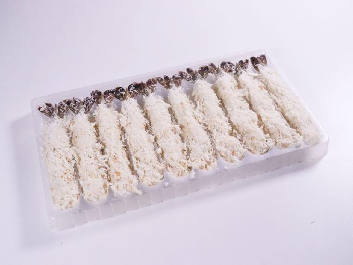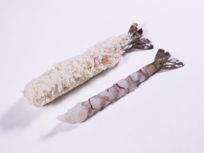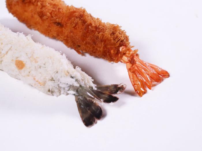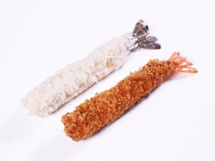 衣(パン粉、小麦粉、鶏卵粉、砂糖、植物油脂、食塩、でん粉、植物性たん白、こしょう)、えび、食塩/加工でん粉、調味料(アミノ酸)、ベーキングパウダー、焼成Ca、香辛料抽出物、(一部にえび・小麦・卵・大豆を含む)