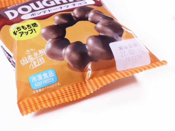 ミックス粉(小麦粉、砂糖、ショートニング、粉末油脂、その他)(国内製造)、食用油脂、チョコレートコーチング(植物油脂、砂糖、乳糖、ココアパウダー)、全卵、もち粉/加工デンプン、ベーキングパウダー、乳化剤(大豆由来)、香料