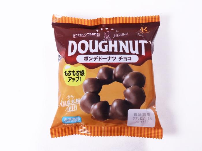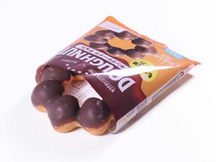 ミックス粉(小麦粉、砂糖、ショートニング、粉末油脂、その他)(国内製造)、食用油脂、チョコレートコーチング(植物油脂、砂糖、乳糖、ココアパウダー)、全卵、もち粉/加工デンプン、ベーキングパウダー、乳化剤(大豆由来)、香料