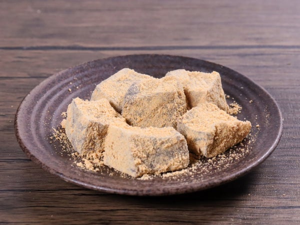 甘味をおさえた黒糖風味のわらび餅に、きな粉をまぶしました。