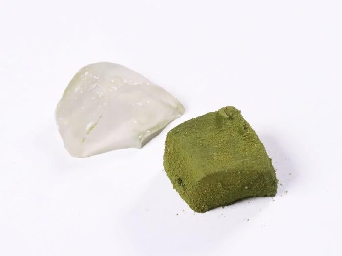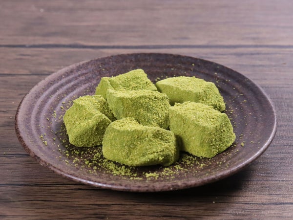 甘味をおさえたわらび餅に、抹茶きな粉をまぶしました。