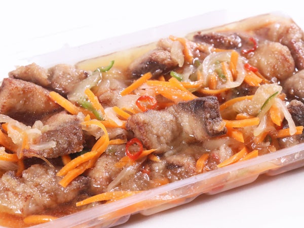 長崎県産のぶりを使用し、玉ねぎ・にんじん・ピーマンとともにさっぱりとした南蛮漬けに仕上げました。