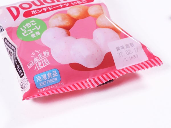 ミックス粉(小麦粉、砂糖、ショートニング、粉末油脂、その他)(国内製造)、食用油脂、チョコレートコーチング(植物油脂、蔗糖、乳糖、脱脂粉乳、その他)、全卵、砂糖、いちごピューレ、もち粉/加工デンプン、ベーキングパウダー、着色料(ビートレッド)、酸味料、香料、乳化剤(大豆由来)