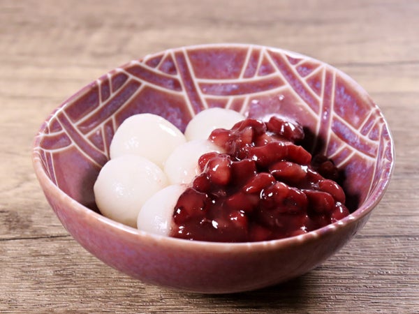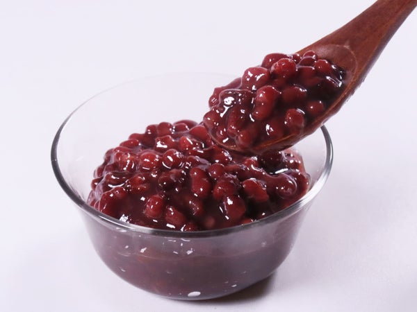 あずきの粒がつやつやと残っており、ほどよいとろみのある粘度で、スイーツにトッピングしたときに流れにくくとどまります。