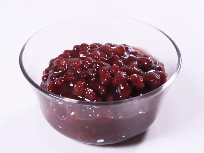 北海道産あずきを使用したスイーツ向け商品です。甘さは控えめで甘いスイーツの盛り込みに適しています。