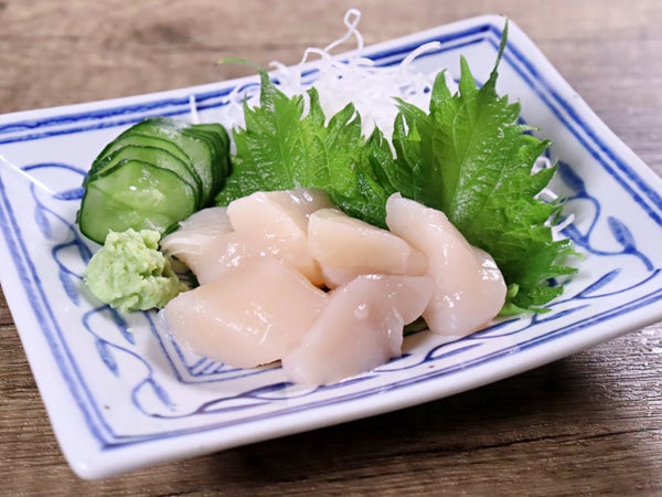 眼鏡開き(厚さを半分)にするとなめらかな口当たり。刺身やカルパッチョや寿司ネタに。