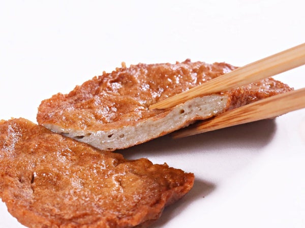 小魚を骨ごとすりつぶしたすり身を使った、愛媛県伊予名物のじゃこ天です。魚のうまみが濃いのが特徴です。