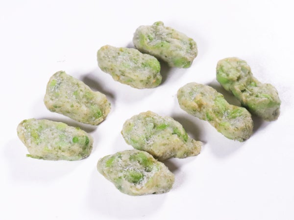 ごろごろ枝豆を白身魚のすり身でまとめて一口サイズの寄せ揚げにしました。ごろっとした枝豆の食感と、青さの豊かな風味が美味しい一品です。