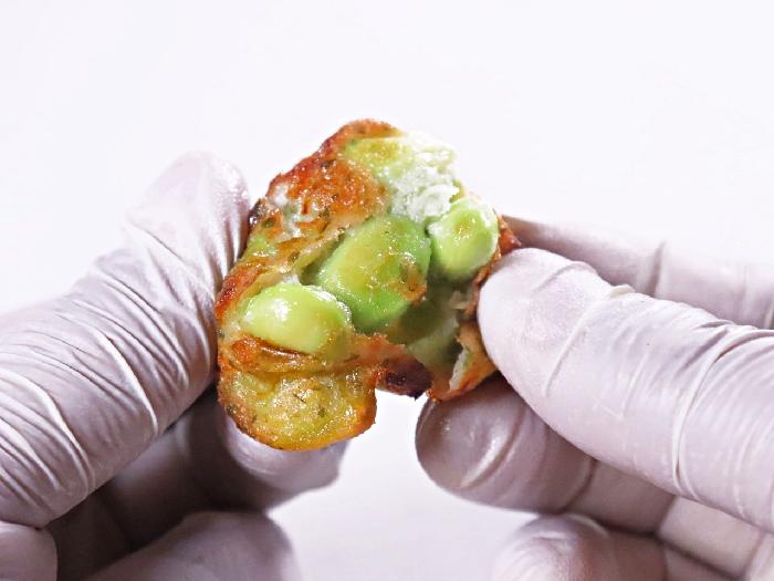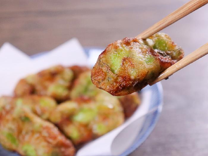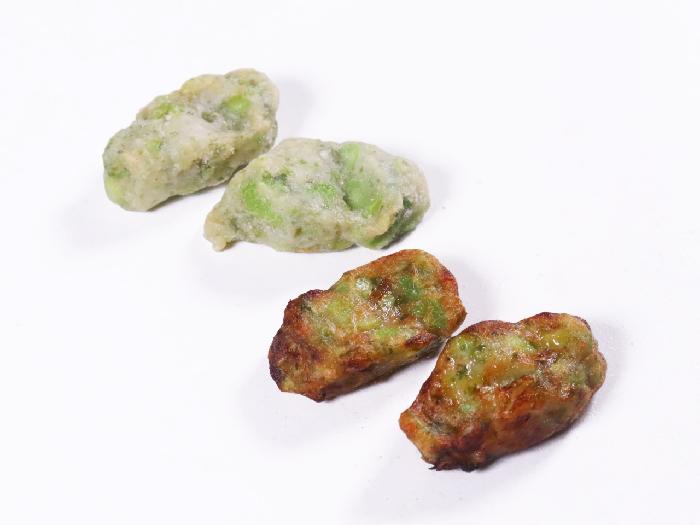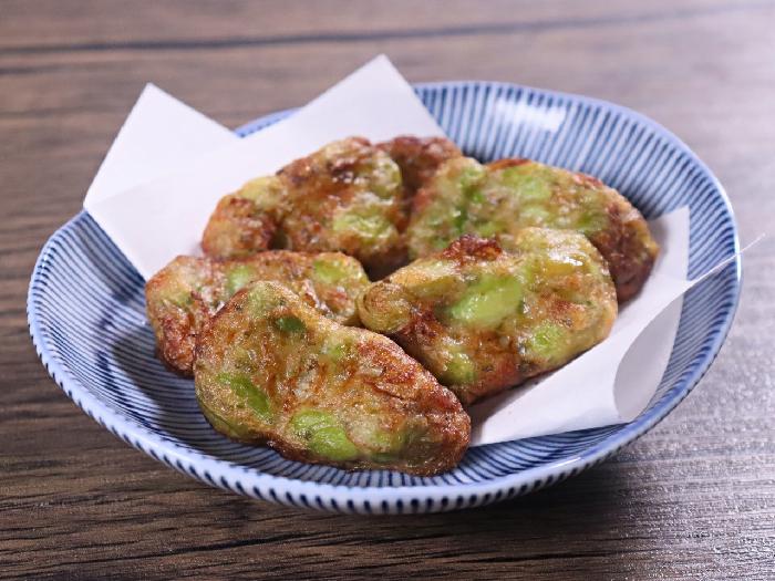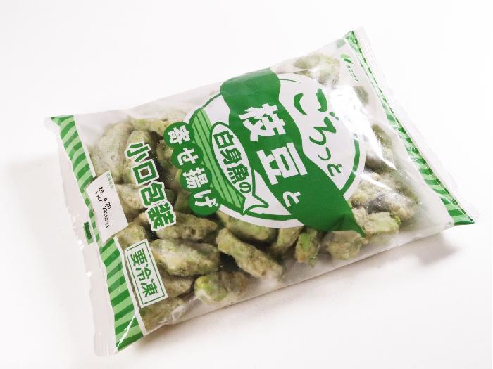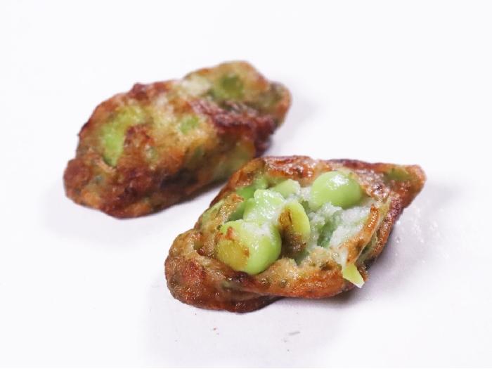 ごろごろ枝豆を白身魚のすり身でまとめて一口サイズの寄せ揚げにしました。ごろっとした枝豆の食感と、青さの豊かな風味が美味しい一品です。