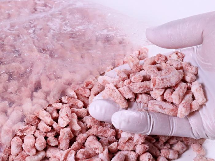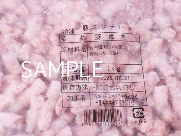 8mmで挽いた粗挽き豚ミンチです。バラ凍結で、必要な分をパラパラの状態で取り出せます。