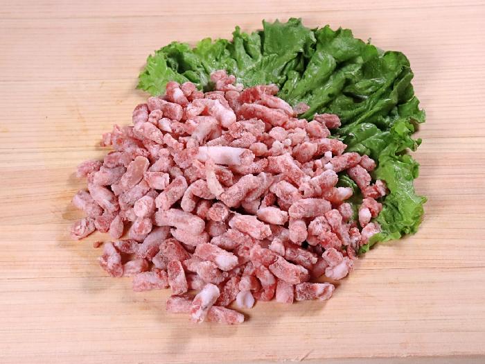 豚肉の端材(タン下原料など)を有効活用したお値打ち粗挽きミンチです。必要量だけ取り出して使える便利なバラ凍結品です。ルーローハン・豚つくね・麻婆豆腐・炒め物など、様々な料理に幅広く使える便利なバラ凍結品です。