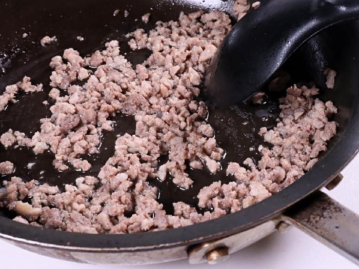 肉感のある粗挽きそぼろ状になります。