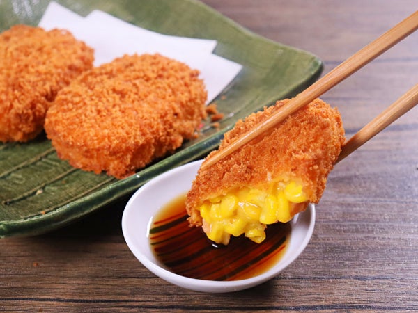 ほぼすべてが北海道産コーンです。じゃがいもはごくわずかで一般的なコロッケの味わいとはまったく違うおいしさです。