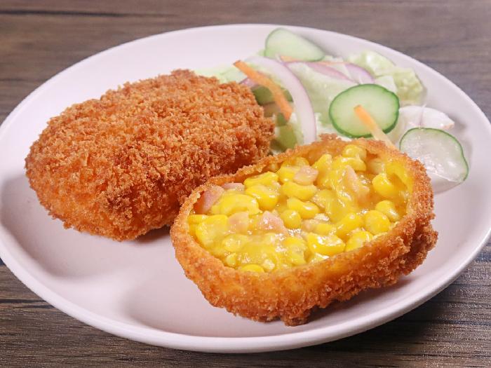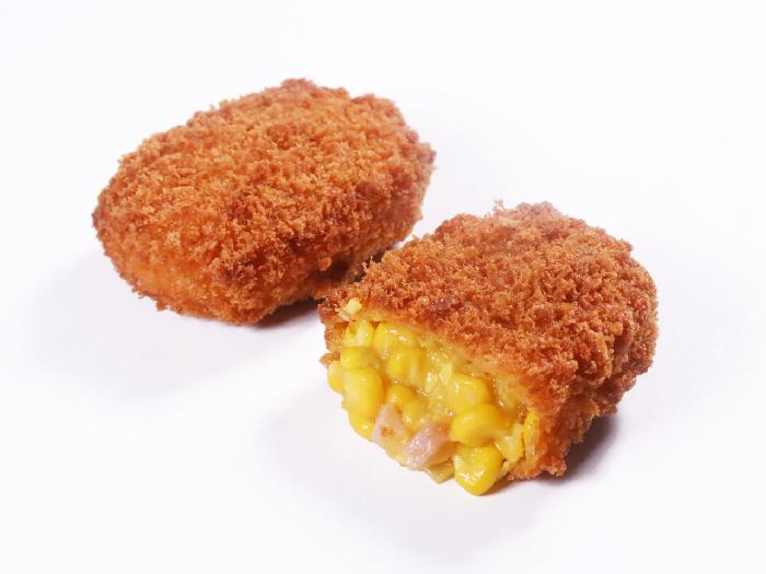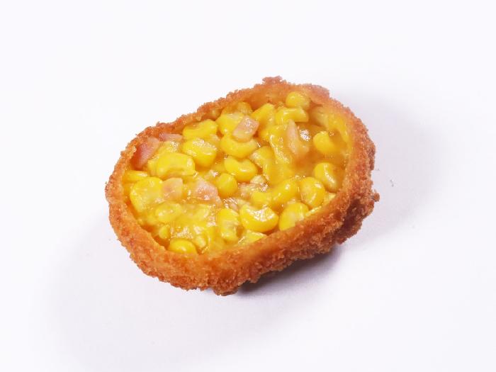 北海道産のとうもろこしをぎっしりと詰め込み、チョップドハムをアクセントに加えた、カット断面が鮮やかで、具材をしっかりと堪能できるフライです。