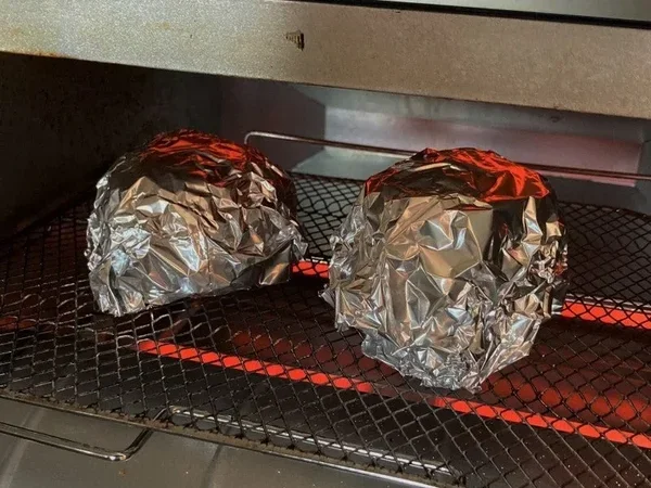 冷凍のままアルミホイルで包み、オーブントースターで約3分加熱してください。