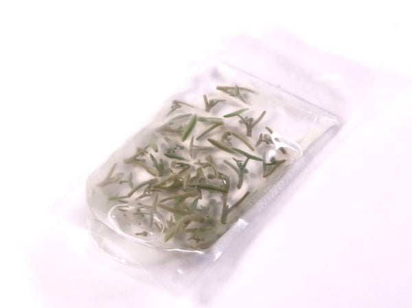 寒天状の膜に包まれている水草の一種で、プリプリする歯ごたえとつるっとした食感が特徴です。酢の物や和え物、汁物に浮かべてご提供ください。