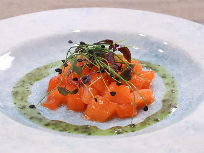 赤しその幼葉で、深い紫色と爽やかな香りは肉料理やお刺身などの和食にぴったりの食材です。村上農園のマイクロハーブシリーズの1種です。