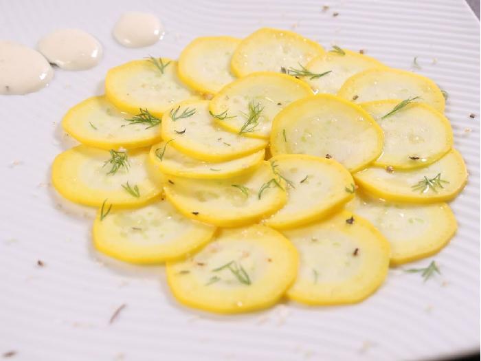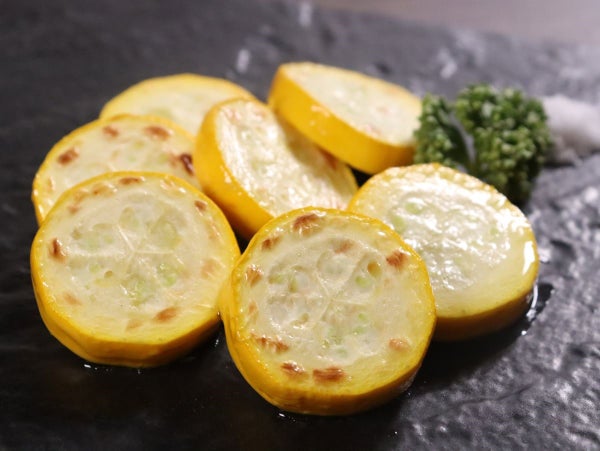 オリーブオイルと塩を少々かけ、グリルで焼きました。ズッキーニの鮮やかな色とジューシーな素材の味が楽しめます。