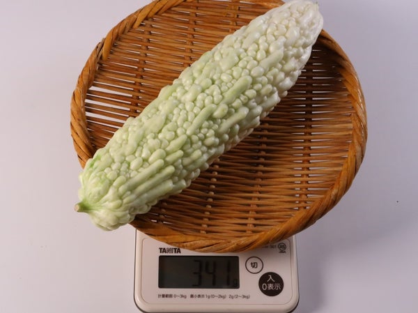 沖縄で食べられてきた苦みが特徴の野菜です。緑色のゴーヤよりやや苦みが少ないです。塩もみやサッと湯通しすることで苦みは軽減されます。ゴーヤチャンプルーやサラダ、天ぷらなどにお使いいただけます。