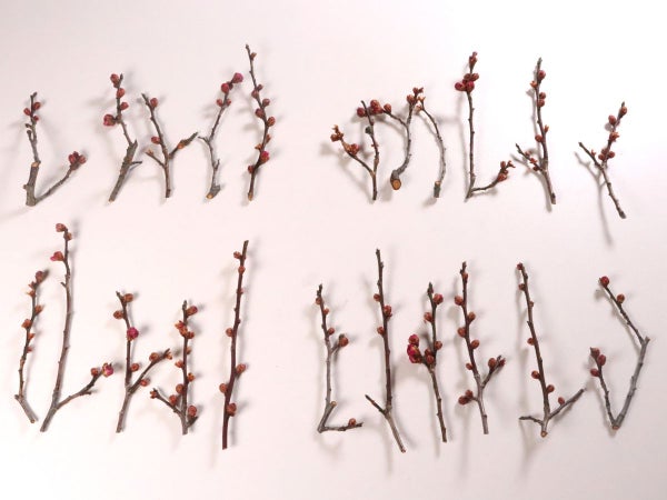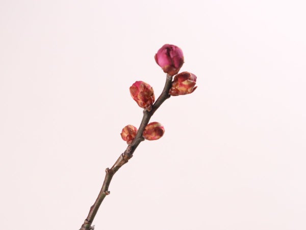 枝付きのかざり花で、早春を感じる赤梅がメニューに彩りを加えます。