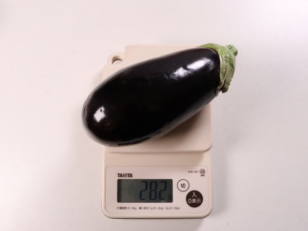 一般的な茄子はへた部分が黒色ですが、米なすは鮮やかな緑色なのが特徴です。