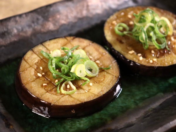 輪切りにして、ナスのステーキにしても迫力が出ます。