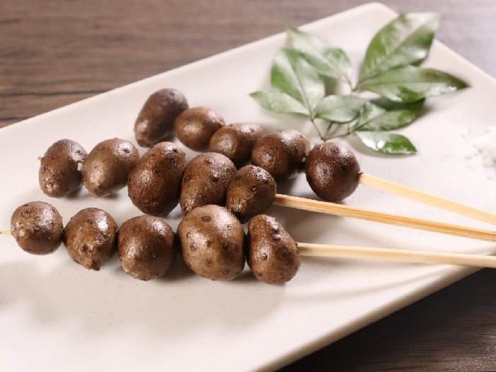 「むかご」とはやまいものつるにできる、養分が詰まった球状の芽のことです。水洗いしたのち、皮ごと3分程度素揚げするだけで、ホクホクの食感になります。皮も香ばしくあがるため、皮をむく必要もありません。