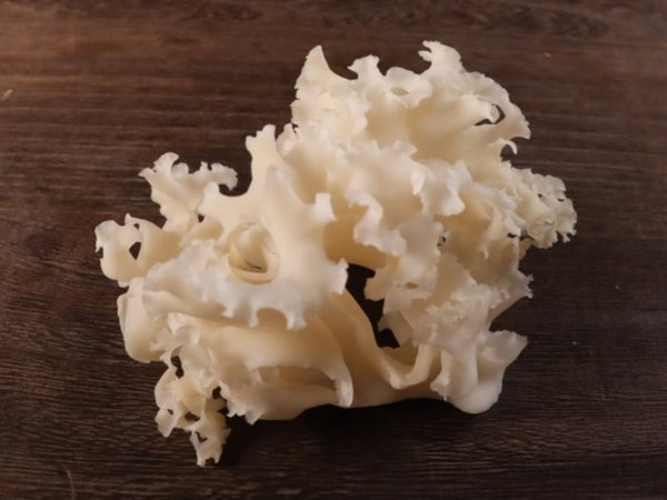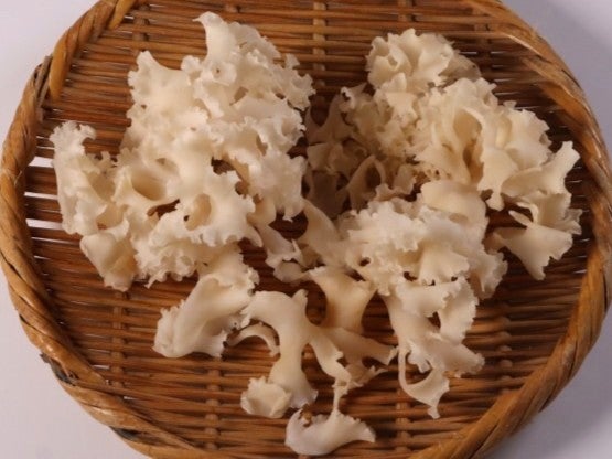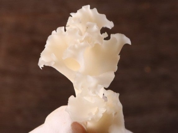 白いフリルのような形をしたキノコです。きくらげのようなシャキシャキ食感です。炒め物はもちろん、酢の物やサラダにもお使いいただけます。