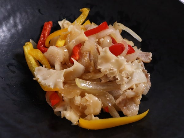 パプリカと一緒に炒めました。きくらげのようなコリコリ食感です。
