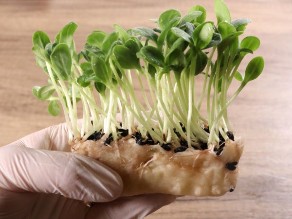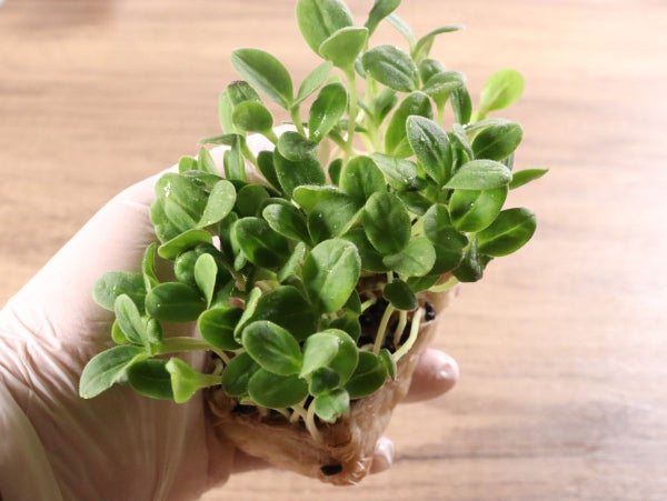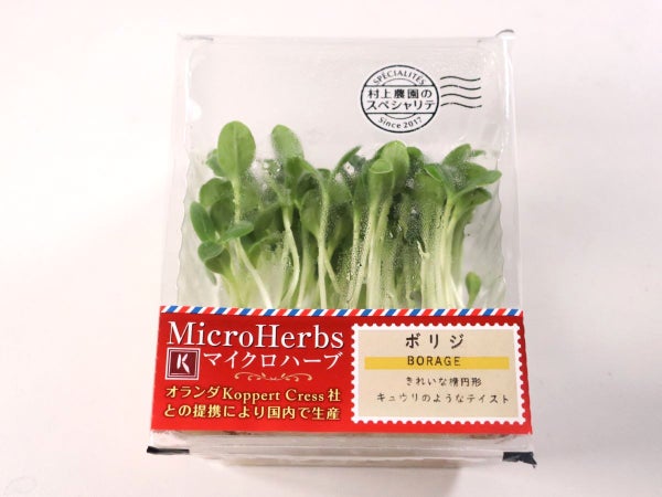 茎はまっすぐしっかりしており、葉はきれいな楕円形をしています。きゅうりのような風味でパリッとした食感。「胡瓜のハーブ」という愛称で呼ばれています。サラダやサンドイッチなどにおすすめです。村上農園のマイクロハーブシリーズの1種です。