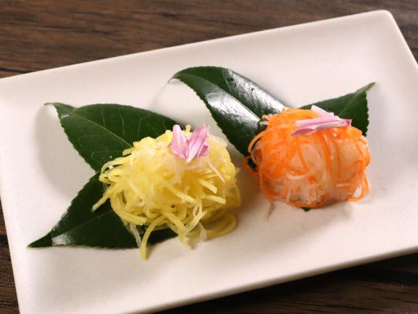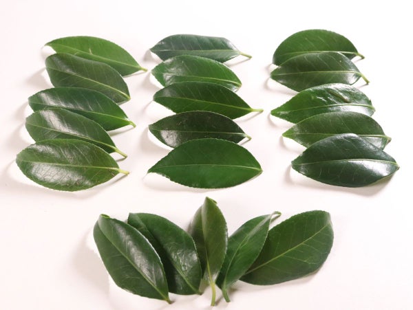 葉に光沢があり、厚みもしっかりあります。椿は「春を告げる木」として知られ、冬から春にかけてお刺身、和菓子の敷葉として人気です。
