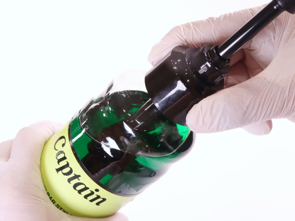 キャプテンシロップ瓶にさし込み、しっかり押してはめ込んでください。