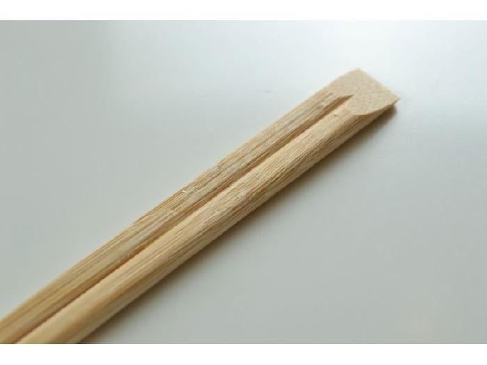 「フシあり」品は、竹のフシ・カスレ・傷があるものを使用した商品です。天削(てんそげ)箸は、上部(天)を斜めに削いであるお箸。割る面積が小さいので軽い力でも割りやすく、少し細目でスマートな印象があります。長めの24cm(約9寸)。