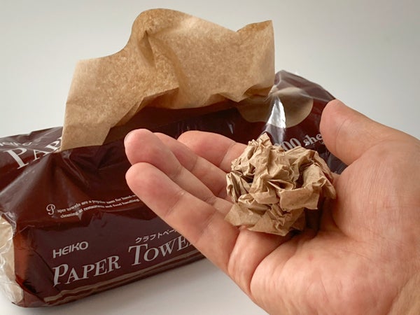 未晒(みざらし)の再生紙100%で作られたペーパータオル