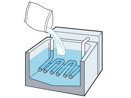 サッと溶けて洗浄効果を素早く発揮。落としにくいヒーターの裏側の汚れも手間をかけずに洗浄できます。 粉が舞い散らず、投入時の泡立ちが少ないので、作業性に優れます。 苛性ソーダ、苛性カリなどの強いアルカリ剤は配合していないので、安心してお使いいただけます。