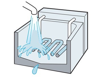 ・洗浄水はアルカリ性です。手袋等を付けて直接触れないようご注意ください。