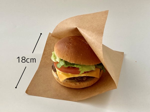 ファストフード店の定番ハンバーガーサイズなら、包んで閉じられます。