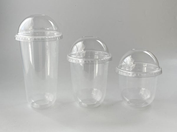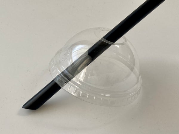 U底透明カップ各サイズに共通して使えるドーム型のフタ。ストロー穴が開いていて、太いタピオカストローも差し込めます。