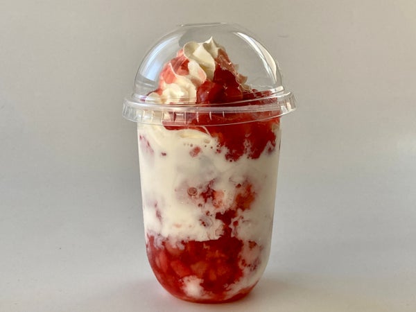 「U底透明カップ」に組み合わせて、丸っこいフォルムを強調します。