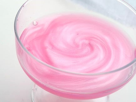 桜色のリキュールの中で、乳白色のパールパウダーが揺らめきます。飲みながらずっとグラスを揺らしていたくなる美しさです。ソーダ割りや炭酸飲料割りにするとかんたんで飲みやすい1杯になります。
