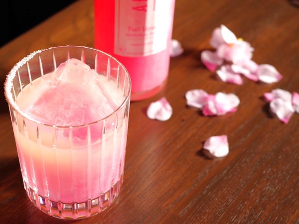 おすすめカクテル(さくらパールのソルティドッグ)/さくらのパールパウダーリキュール2:1グレープフルーツジュース