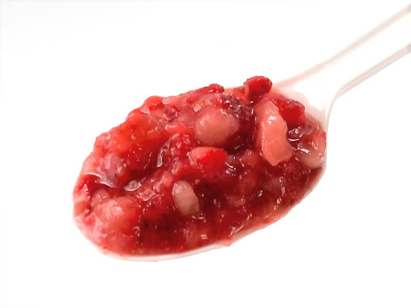 1袋におよそスプーンいっぱいのいちご果肉が刻み込まれています。