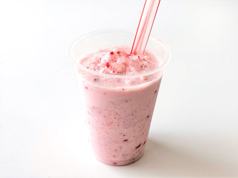 ミルクを加えて混ぜると果実感のあるフラペドリンクが作れます。