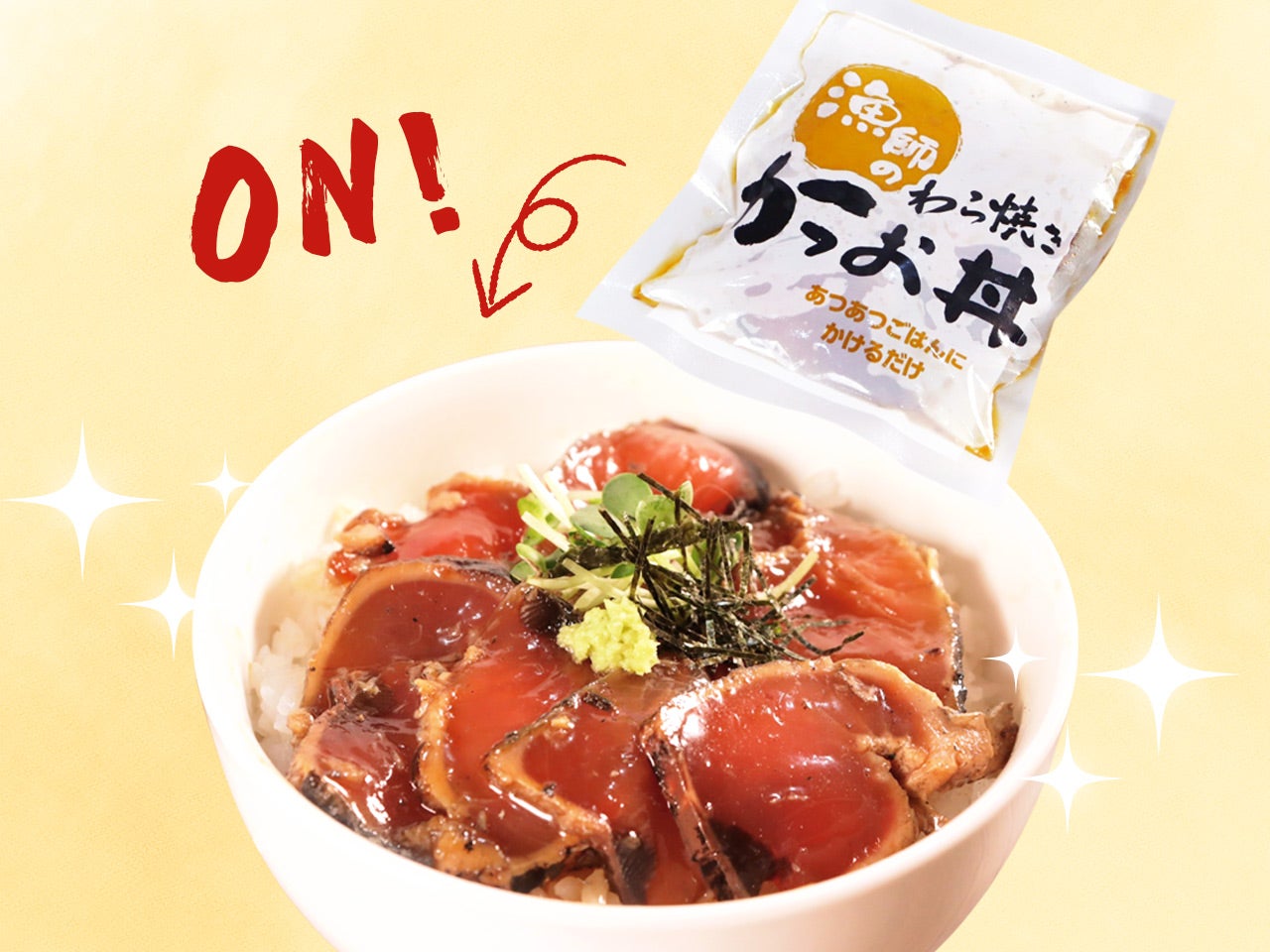 土佐のかつお生産者・明神水産が作ったかつおたたたき丼の具です。こだわりのわら焼きかつおたたきをスライスし、甘めのたれとともに急速冷凍しました。
