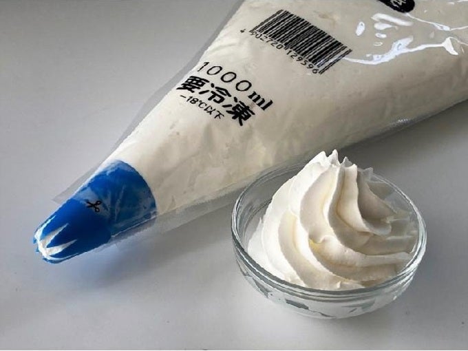 まずは、絞り出しタイプの冷凍ホイップクリーム4種を比べてみましょう。