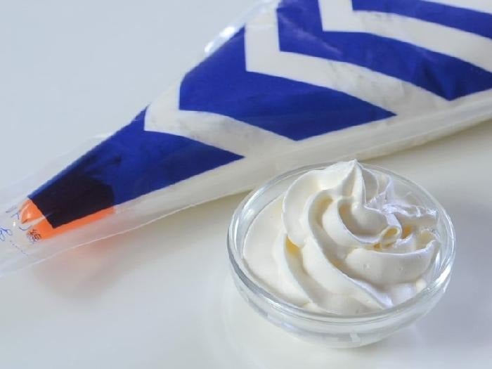 まっ白でくちどけの軽い設計。デザートにもドリンクにも使いやすい万能型バランスタイプです。 程よい硬度があるので白く美しいエッジが立ったホイップが絞れます。