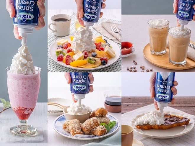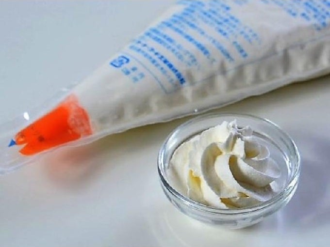 ふわっと盛り付けられるナチュラルなタイプや、軽い泡を創り出す噴射式タイプ。星型の口金絞り出しとは見た目のイメージも変わります。