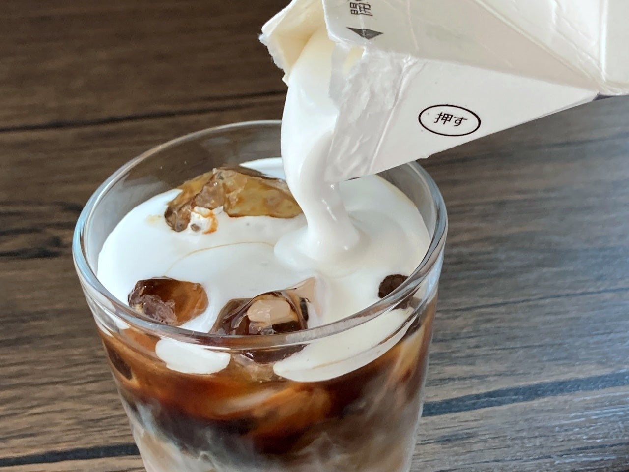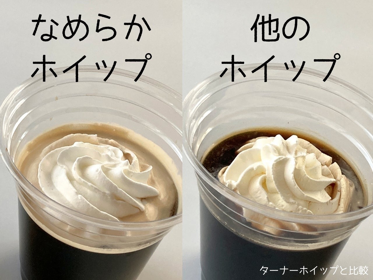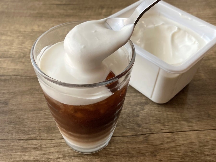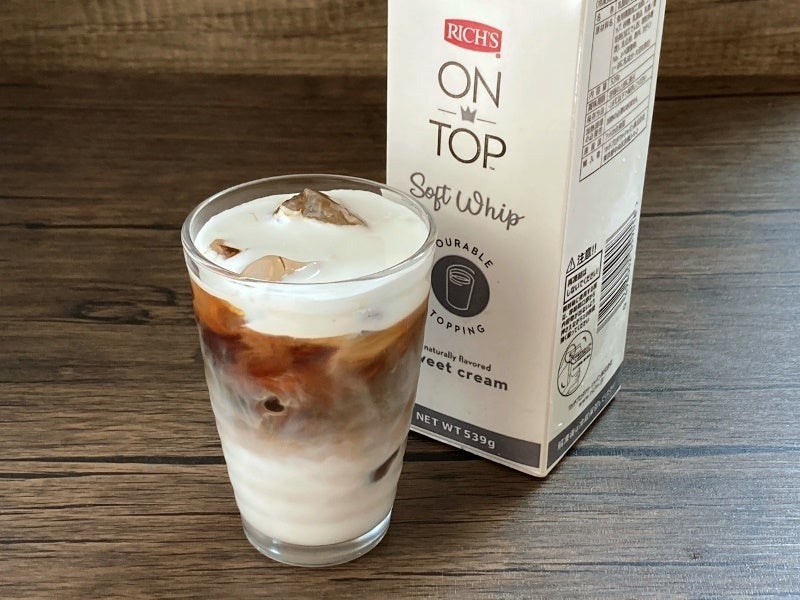 ゆるやかなクリームがドリンクの上でとどまり、混ぜればなめらかに溶け込みます。