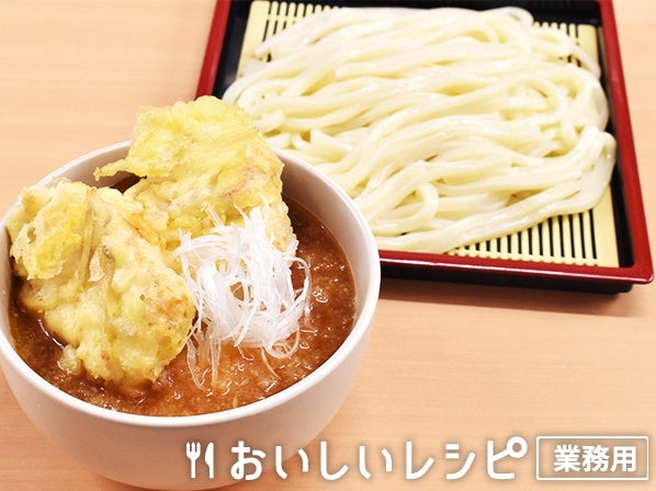 いりこ・さば・鰹の風味を合わせた濃厚なスープに大根おろしを合わせ、濃厚ながらさっぱりとした後味のつけうどんです。鶏天とつけ汁との相性も良いです。