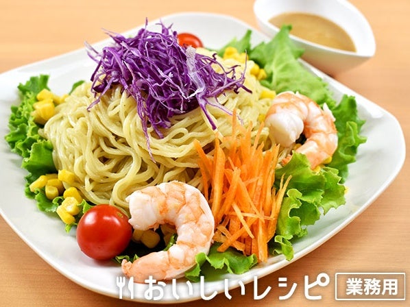北海道発祥の冷製サラダです。スープを薄めずに、野菜と中華麺に絡めてお召しあがりください。